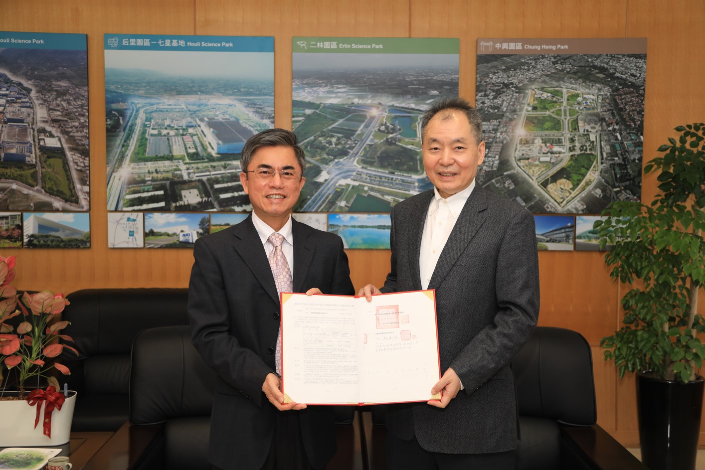 成運汽車公司董事長吳定發(右)上午拜會中科局長許茂新,感謝中科協助進駐二林園區。圖/中科管理局提供