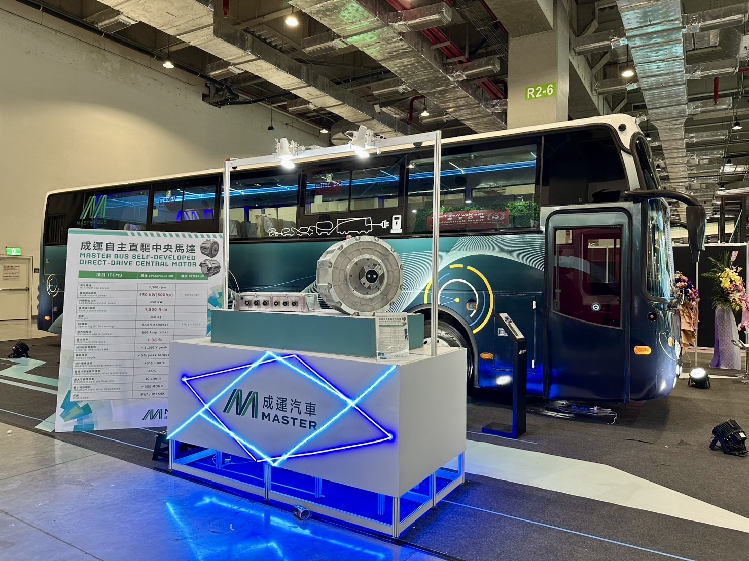 成運汽車今年展示的最大亮點,為自主開發的450kW直驅馬達。這款最高規格的馬達專為長途爬坡路段的城際電動巴士設計,提供強大的動力與高效的能量轉換效率,確保即使在最具挑戰性的路段上,巴士也能平穩運行。