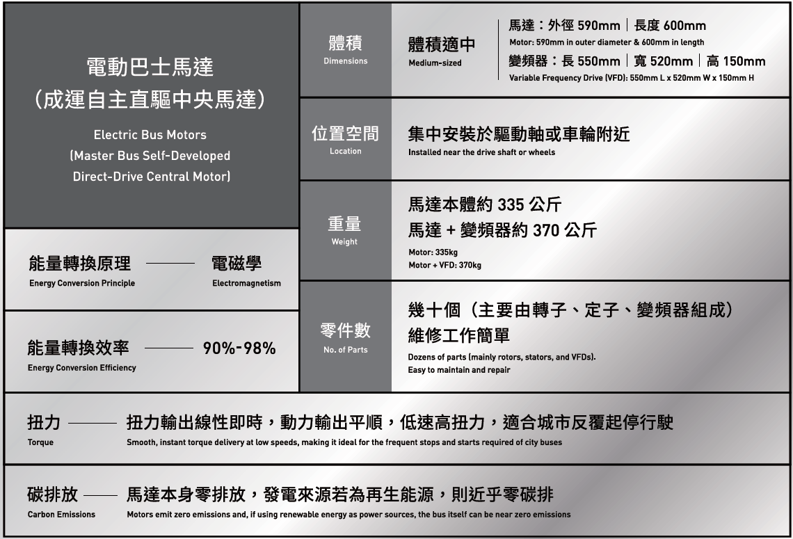 ▲成運汽車自主研發的直驅中央馬達,能源效率高達 98%,降低不必要的耗損。