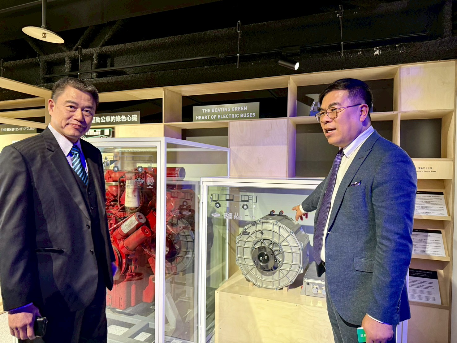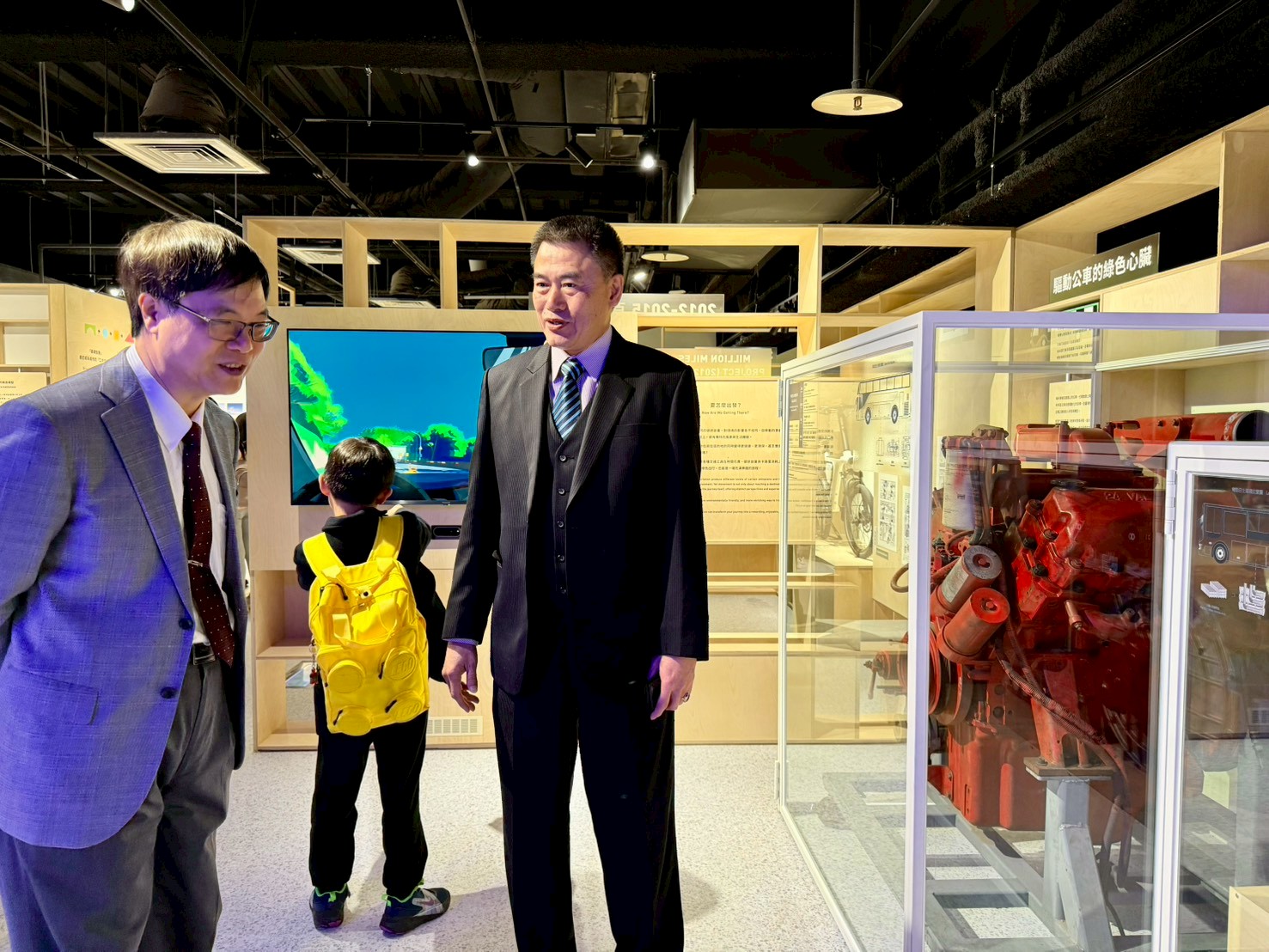 ▲科教館館長劉火欽(左)參觀交通轉型區成運汽車展品。
